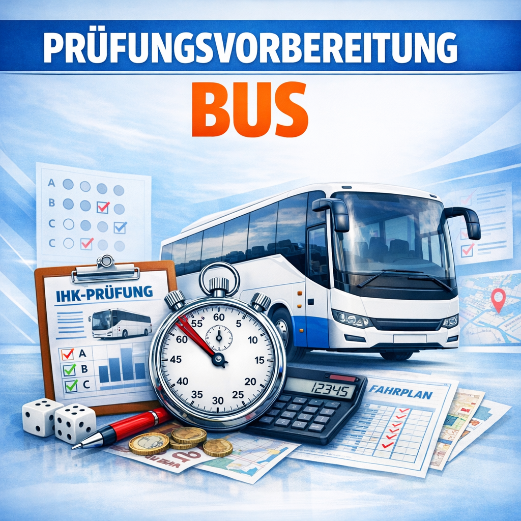 Typische IHK‑Bus‑Prüfungsaufgaben Fallbeispiele zu Fahrplänen, Genehmigungen, Betriebskosten, Sicherheit.